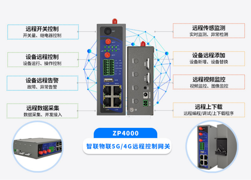 工业物联网关具有数据采集、协议分析、边缘计算、5G/4G/3G/wifi/有线以太网等网络接入能力,能够传输和接入工业云平台。支持采集分布式设备的接入节点,如PLC、传感器(包括温度传感器、湿度传感器、水质传感器、液位传感器、气体传感器等)、仪器仪表和各种控制器。